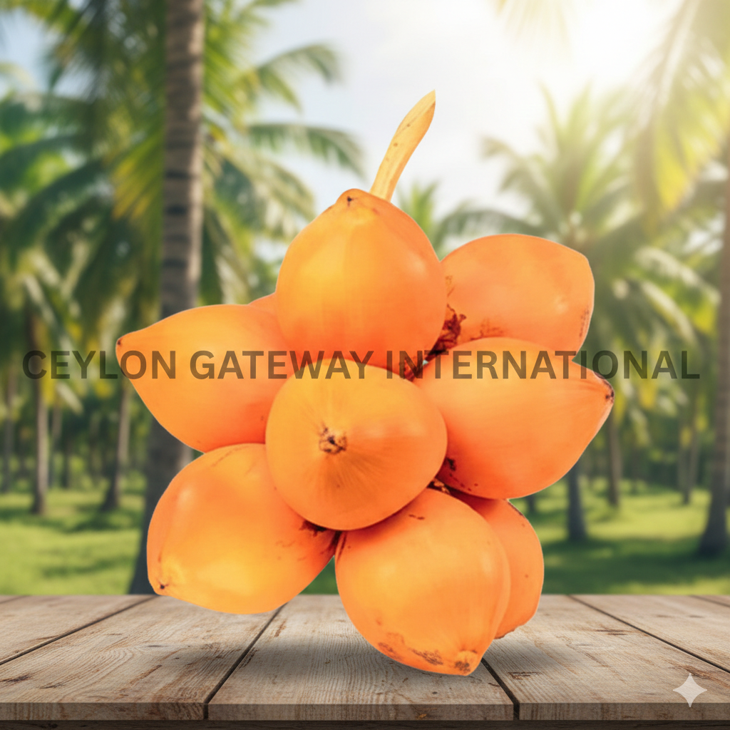 Carefully harvested premium King Coconuts with a natural golden color, crisp texture, and rich nutrients. A symbol of purity and quality.